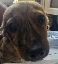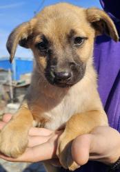 Sarah, geb. Dez. 2023. Die freundliche Hündin ist auf der Suche nach ihrem Für-Immer-Körbchen.