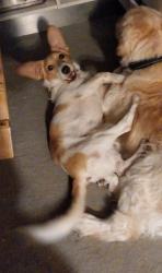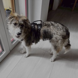 Seid kurzem hat die kleine Maus einen Rollstuhl und flitzt damit durch die Gegend. Sie ist mittlerweile sehr aufgeschlossen allem gegenüber und zeigt sich anderen Hunden sehr verspielt. Zudem kehrt die Beweglichkeit in den Gliedmaßen teils zurück und wir üben täglich um ihre Hinterbeine zu stärken. Ihre Rute wedelt bereits, wenn sie sich freut und auch ihr rechtes Hinterbein kann bei großem Interesse plötzlich stehen.