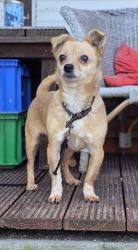 Pucky, geb. im Dezember 2023, ist ein sanfter Schmuser. Der freundliche, ruhige Rüde mit einer Schulterhöhe von guten 25 cm und einem Gewicht von in etwa 7 bis 8 Kilo freut sich über JEDE Zuwendung und einer tut er immer: mit seinem Schwanz wedeln. Er freut sich, wenn er etwas zu essen bekommt (er hört aber auch auf, wenn er satt ist), wenn man mit ihm spricht, wenn man ihn krault.