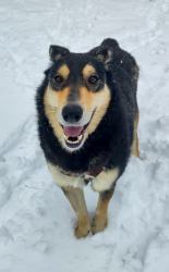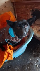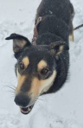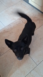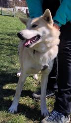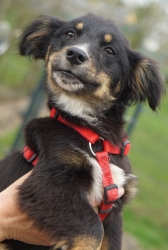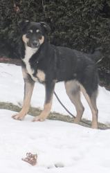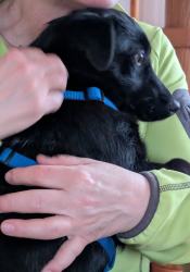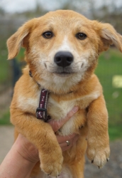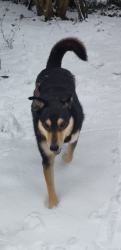 Babuschka ist anderthalb Jahre alt und kommt aus einem rumänischen Shelter. Sie ist ein leichter Fall von Angsthund, unproblematisch, wenn sie mal Vertrauen gefasst hat. Sie ist verträglich mit allen anderen Hunden und auch Katzen, geht brav an der Leine, kann auch frei laufen, kann Sitz, Platz, Komm, etwas Bleib und Ball spielen klappt auch schon schön. Sie fährt gut Auto, ist lieb, verspielt, verschmust, könnte sowohl zu anderen Tieren als auch allein vermittelt werden (Letzteres, wenn jemand sehr viel Zeit für sie hat.).