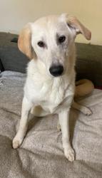 weiß: 1 1/2 Jahre, seit der Welpenzeit bekannt, voll an Menschen gewöhnt, sehr lieb und aufgeschlossen, gut sozialisiert mit Hunden, dankbar noch zu leben, sehr willens zu gefallen.
