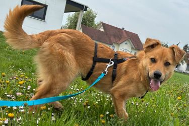 Crina hat sich schnell an die täglichen Routinen gewöhnt und ist unkompliziert, wenn man ihr Zeit gibt anzukommen. Sie ist bereits stubenrein, ein entspannter Beifahrer, kann in Hundegesellschaft ein paar Stunden alleine bleiben, geht gut an der Leine und bleibt auch im Freilauf in der Nähe. Crina zeigt bisher keinen Jagdtrieb, sondern genießt es lieber sich ausgiebig im Gras zu wälzen. Bei Begegnungen mit anderen Menschen braucht Crina Anleitung, da sie sonst aus Scheu schon mal ins Bellen verfällt. Crina ist eine sehr liebenswerte Hündin, die eine starke Bindung zu ihrem Menschen aufbaut und ein treuer Seelenhund werden wird.
