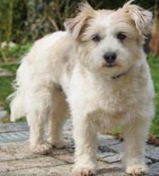 Joy, geboren *11/2019, ist eine ruhige, sensible Hündin, mit 14 bis 15 Kilo und 35 cm Schulterhöhe. Sie ist sowohl mit Hunden als auch Katzen sehr verträglich. Menschen gegenüber ist sie nach kurzer Zeit aufgetaut, genießt ihre Streicheleinheiten sehr und zeigt sich anhänglich.