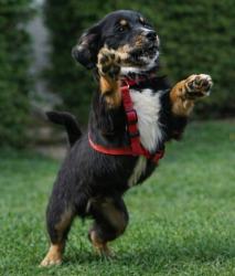 Tely ist eine etwa zweijährige, kastrierte Hündin mit einer Schulterhöhe von rund 40 cm - eine perfekte Mischung aus handlich und lebensfroh.